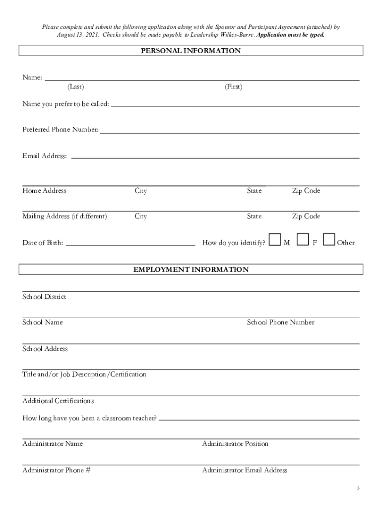To fill out the Leadership Wilkes-Barre 4 Public form, participants must provide information about their leadership experience, goals, and achievements.