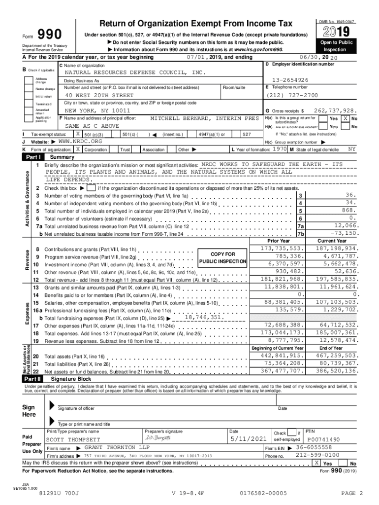 Return of Organization Exempt From Income Tax990FormI Information about Form 990 and its instructions is at www.irs.gov/form990.NATURAL RESOURCES DEFENSE COUNCIL, INC. Address changeling Business