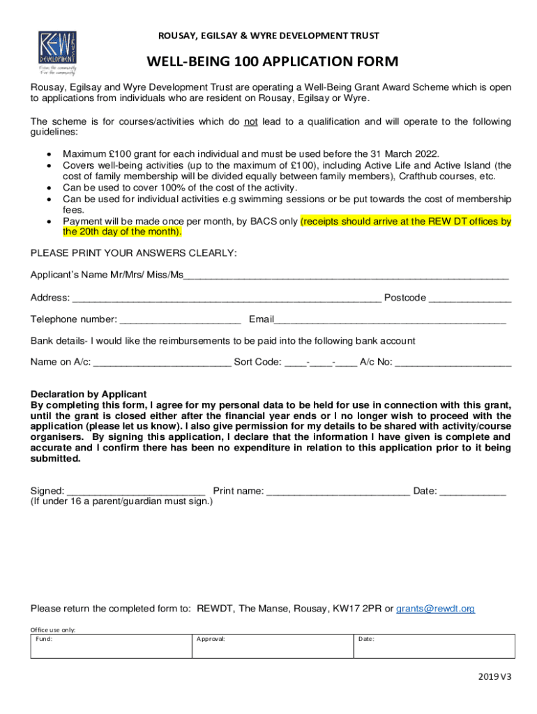 ROSA, RAILWAY & WERE DEVELOPMENT TRUSTWELLBEING 100 APPLICATION FORM Rosa, Railway and Were Development Trust are operating a WellBeing Grant Award Scheme which is open to applications from individuals