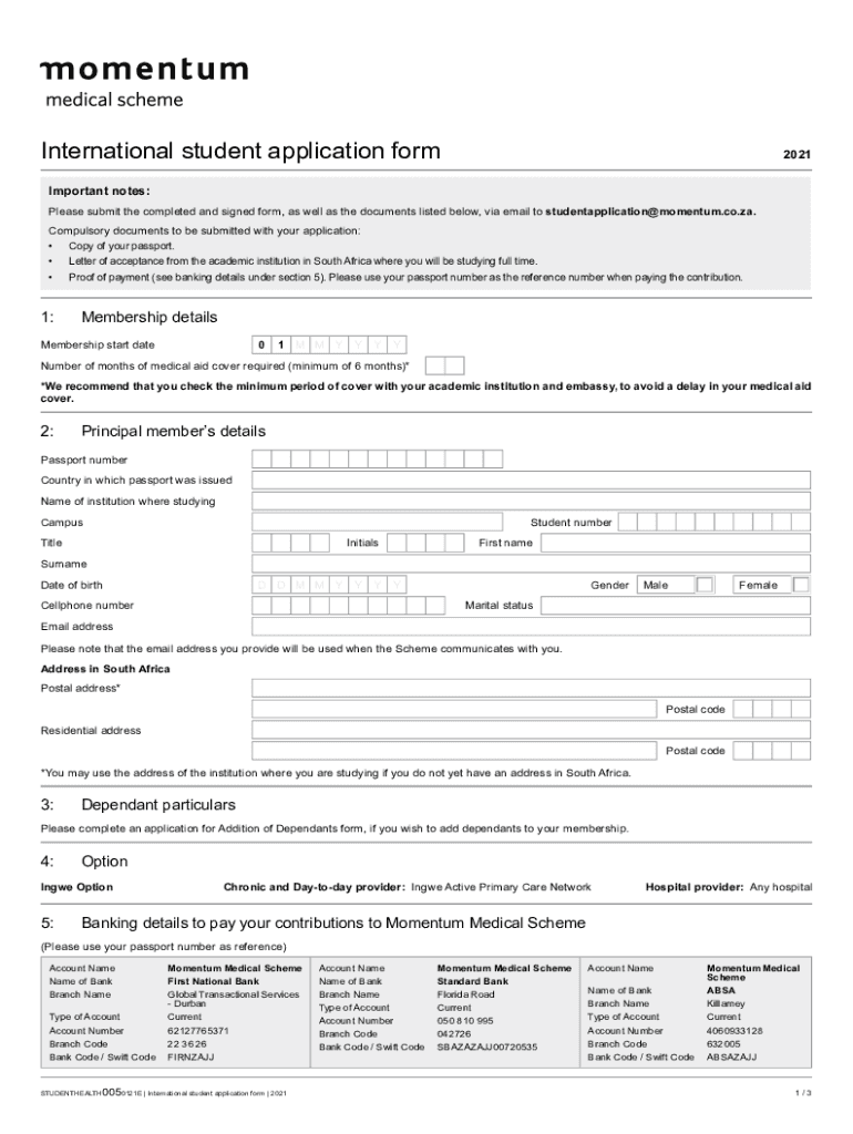 International student application form2021Important notes: Please submit the completed and signed form, as well as the documents listed below, via email to studentapplication@momentum.co.za. Compulsory