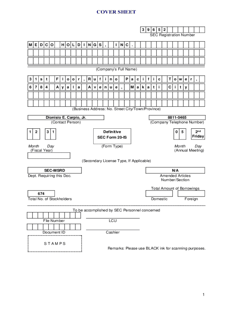 Get the free SECURITIES AND EXCAHNGE COMMISSION - medco.com.ph
