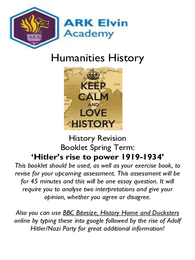 Get the free Year 9 History Revision Booklet - Ark Elvin Academy