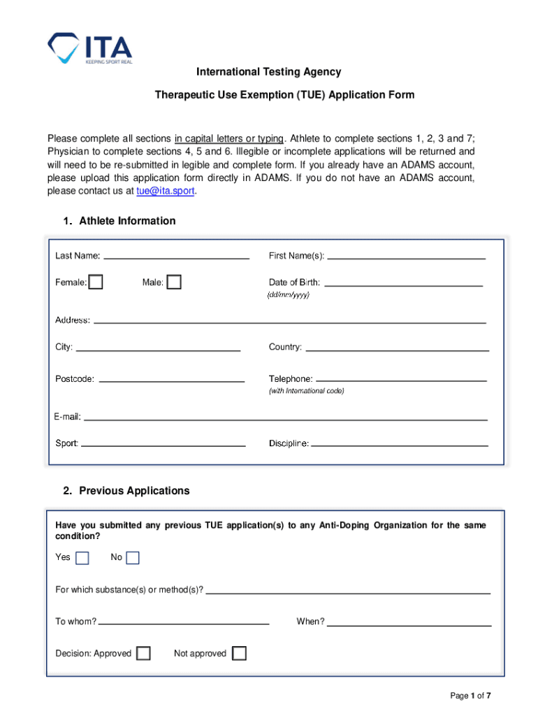 To fill out a Therapeutic Use Exemption (TUE) form, follow these steps: