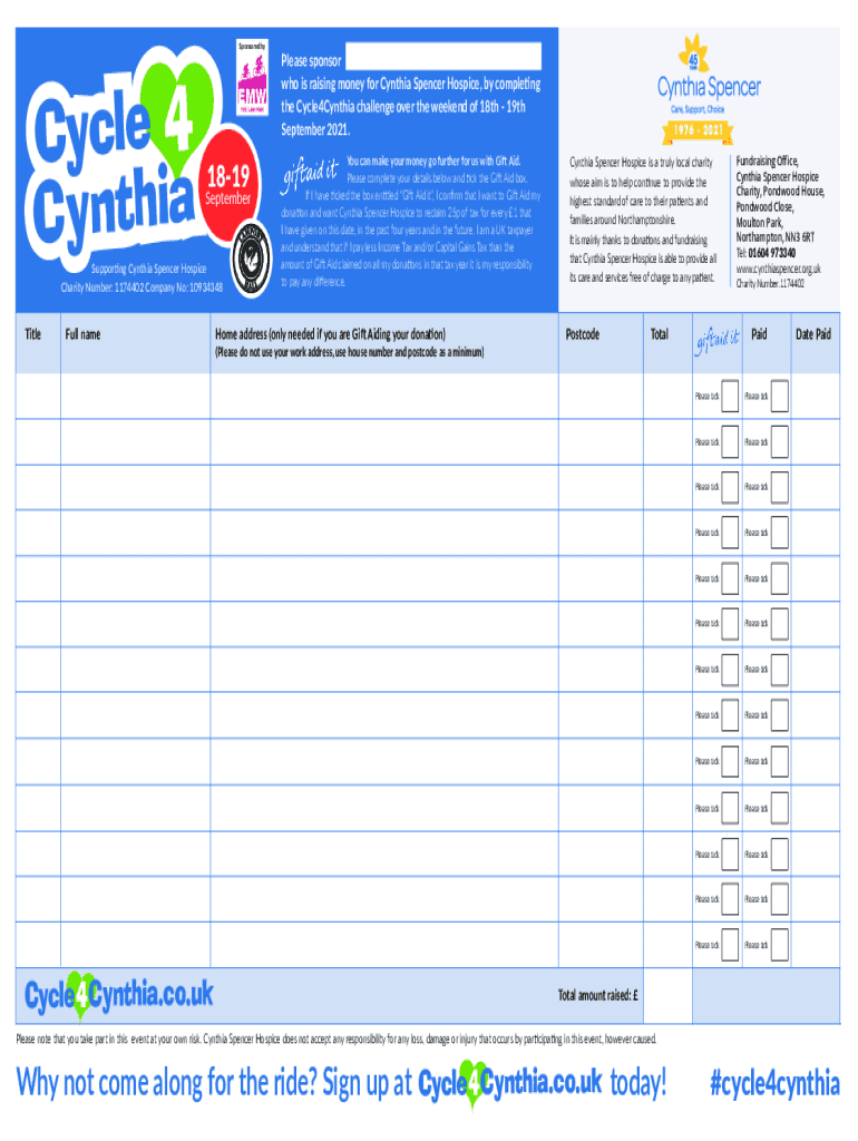 Sponsored by1819LSeptember PO AM RT HALL Supporting Cynthia Spencer Hospice Charity Number: 1174402 Company No: 10934348TitleFull nameplate sponsor who is raising money for Cynthia Spencer Hospice,