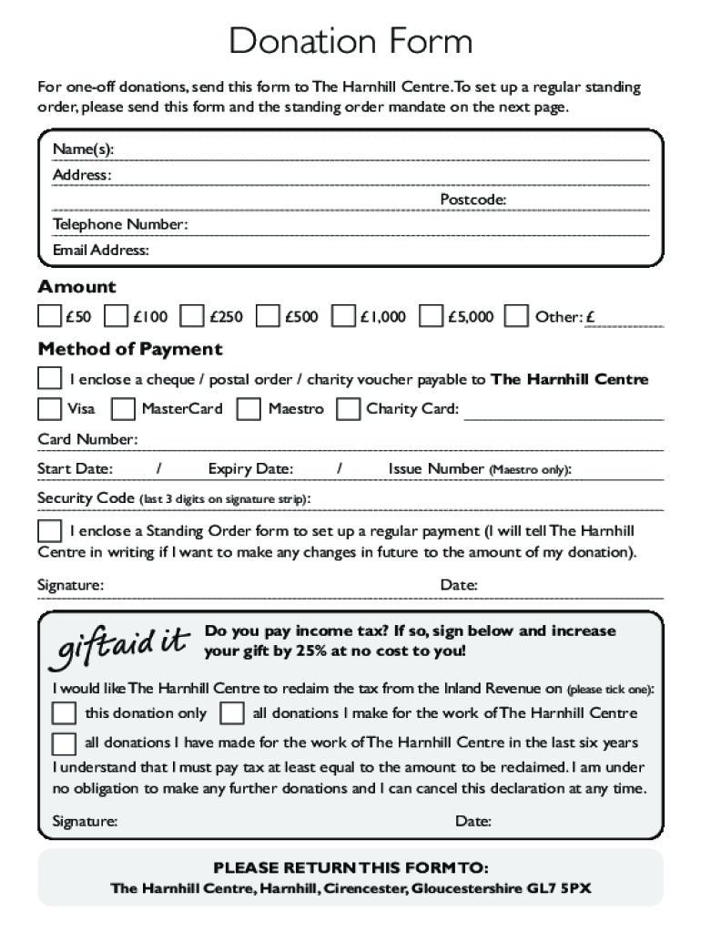 Get the free For one-off donations, send this form to The Harnhill Centre