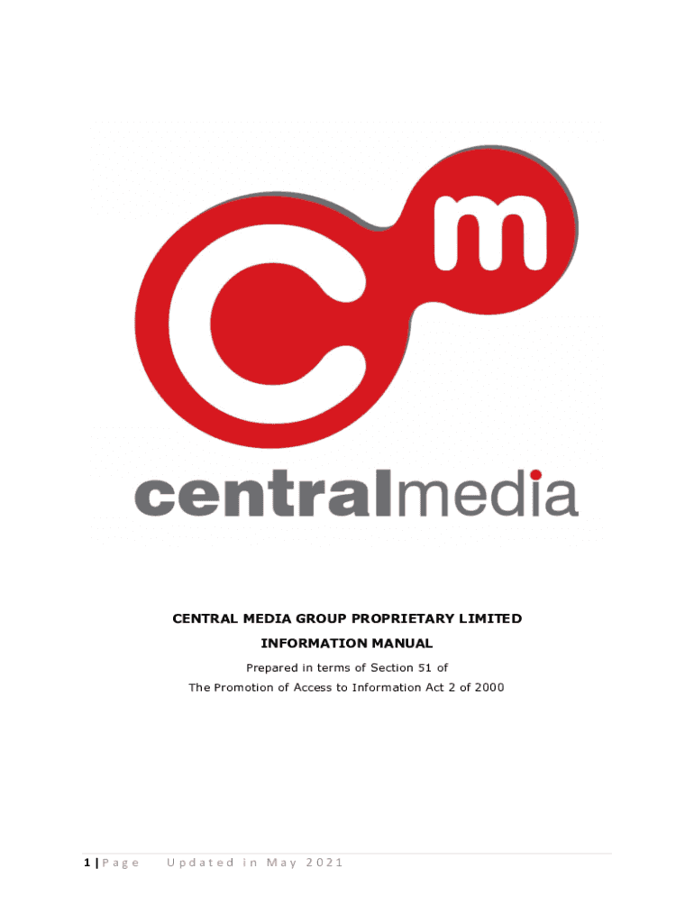 CENTRAL MEDIA GROUP PROPRIETARY LIMITED INFORMATION MANUAL Prepared in terms of Section 51 of The Promotion of Access to Information Act 2 of 20001|PageUpdated in May 20211. PREFACE Central Media
