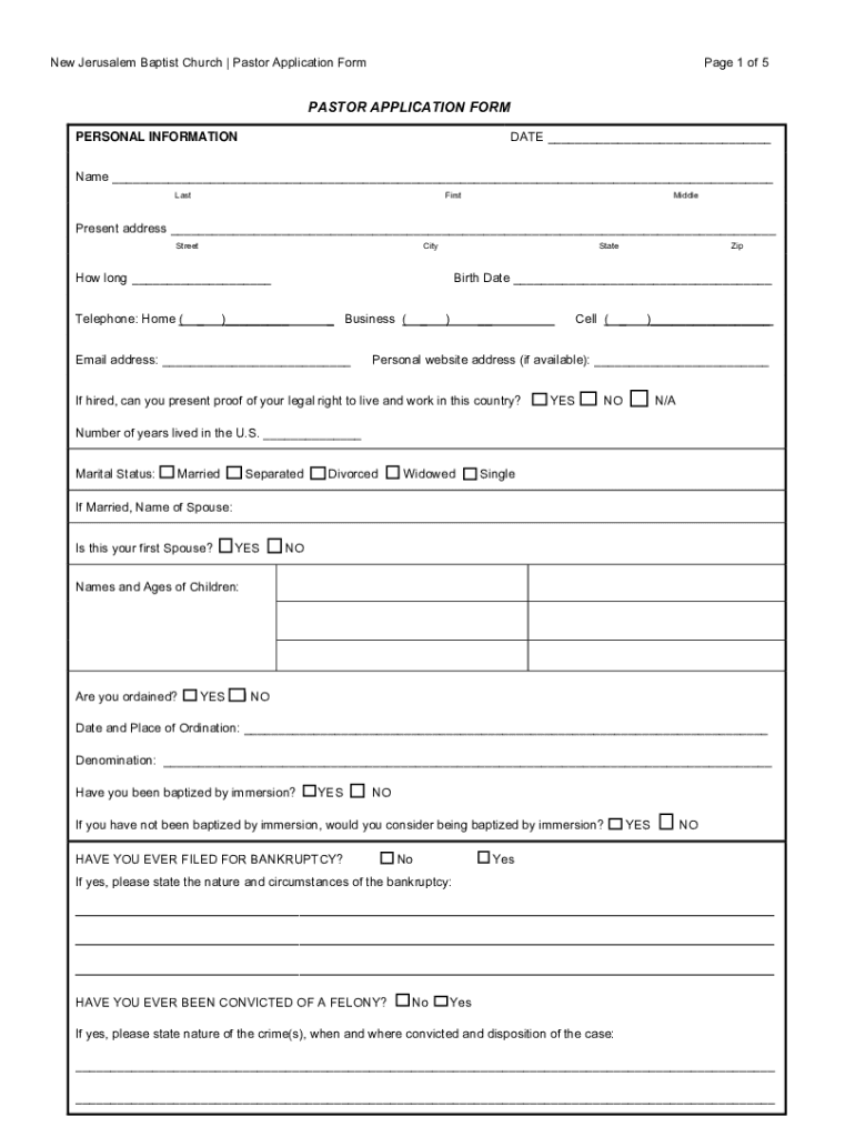Get the free New Jerusalem Baptist Church Pastor Employment Application