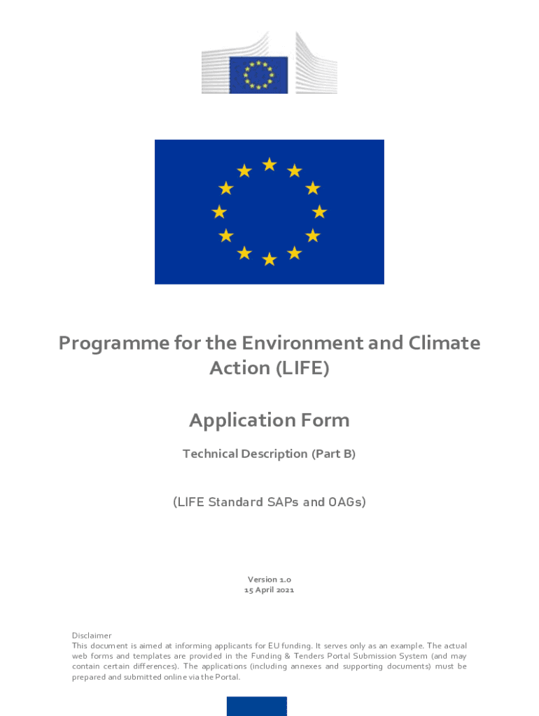 Program for the Environment and Climate Action (LIFE) Application Form Technical Description (Part B)(LIFE Standard SAP's and Bags)Version 1.0 15 April 2021Disclaimer This document is aimed at informing