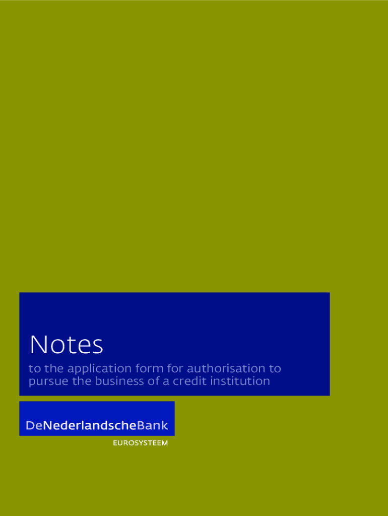 Notes to the application form for authorization to pursue the business of a credit institutionNotesto the application form for authorization to pursue the business of a credit institution This document