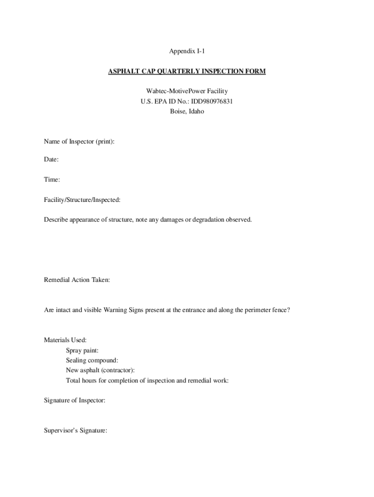 Get the free Appendix I-1 ASPHALT CAP QUARTERLY INSPECTION FORM ... - www2 deq idaho
