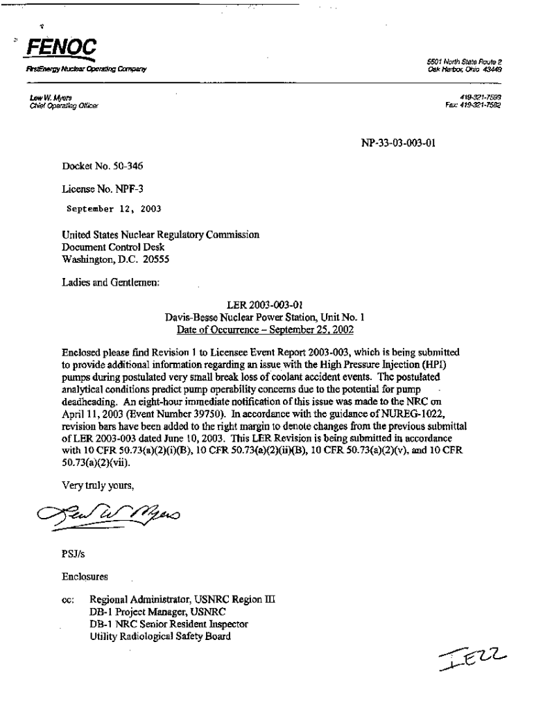 LER 03-003-01 is a Licensee Event Report related to an event at the Davis-Besse nuclear power plant.