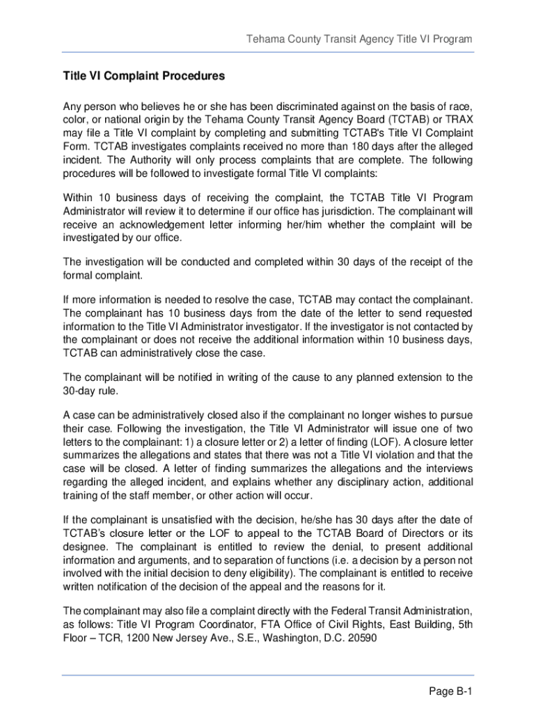 Get the free Online Title VI Complaint Procedures ...