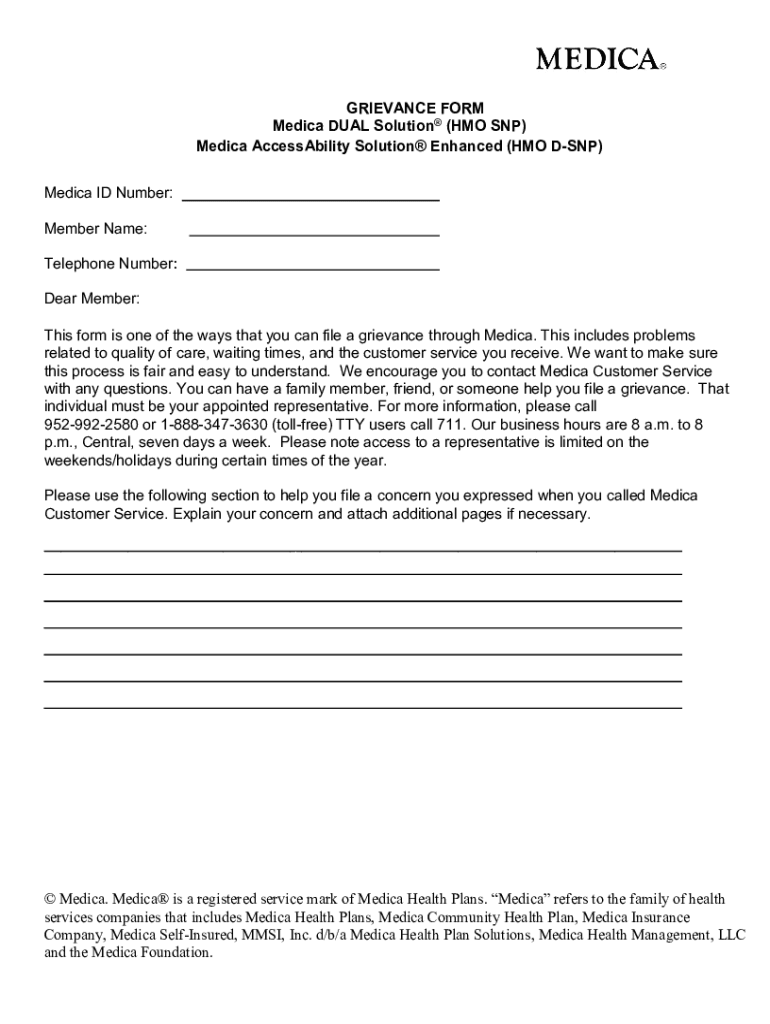 GRIEVANCE FORM Media DUAL Solution (HMO SNP) Media Accessibility Solution Enhanced (HMO DSP) Media ID Number: Member Name: Telephone Number: Dear Member: This form is one of the ways that you can