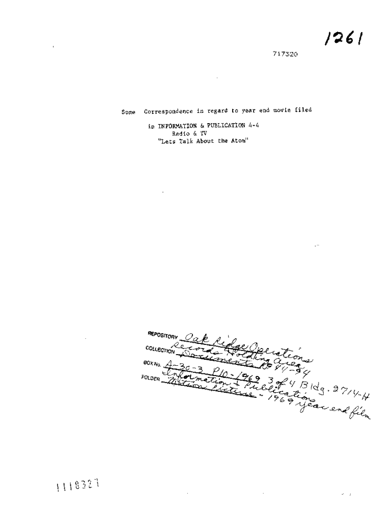 SomeCorrespondence in regard to year-end movie file din INFORMATION & PUBLICATION 4 4 Radio & TV 'Lets T an l k About the Atom “. . ......, ×...., EPR.................UNITED STATESATOMIC ENERGY