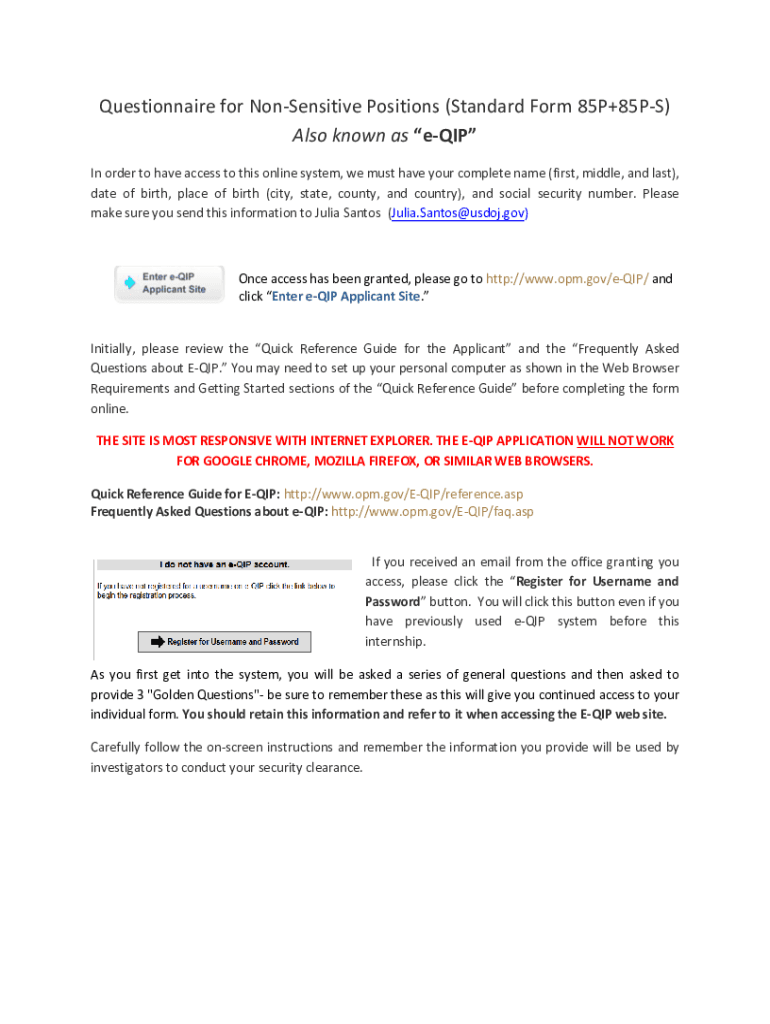Questionnaire for Nonsensitive Positions (Standard Form 85P+85PS) Also known as equip In order to have access to this online system, we must have your complete name (first, middle, and last), date
