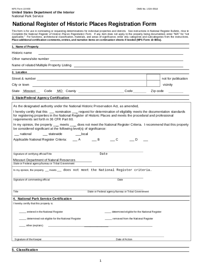 What is NPS 10 900 OMB No. 1024 0018 - mostateparks.com Form?