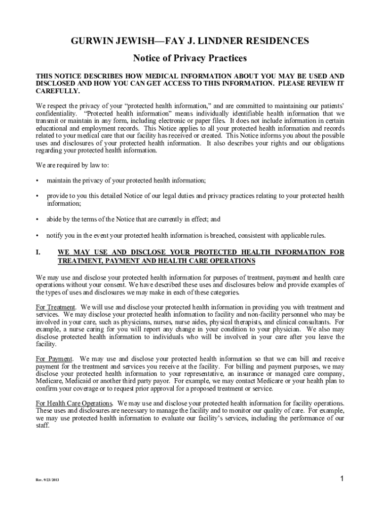 Get the free Fay J Lindner Revised Privacy Practices Form Sept 2013.doc