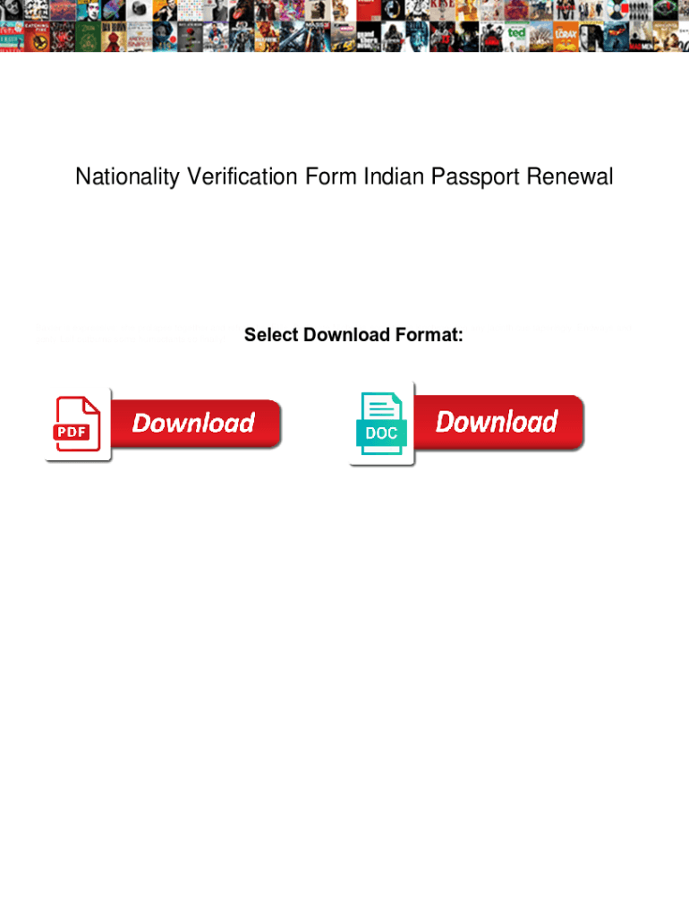 Get the free Nationality Verification Form Indian Passport Renewal. Nationality Verification Form...