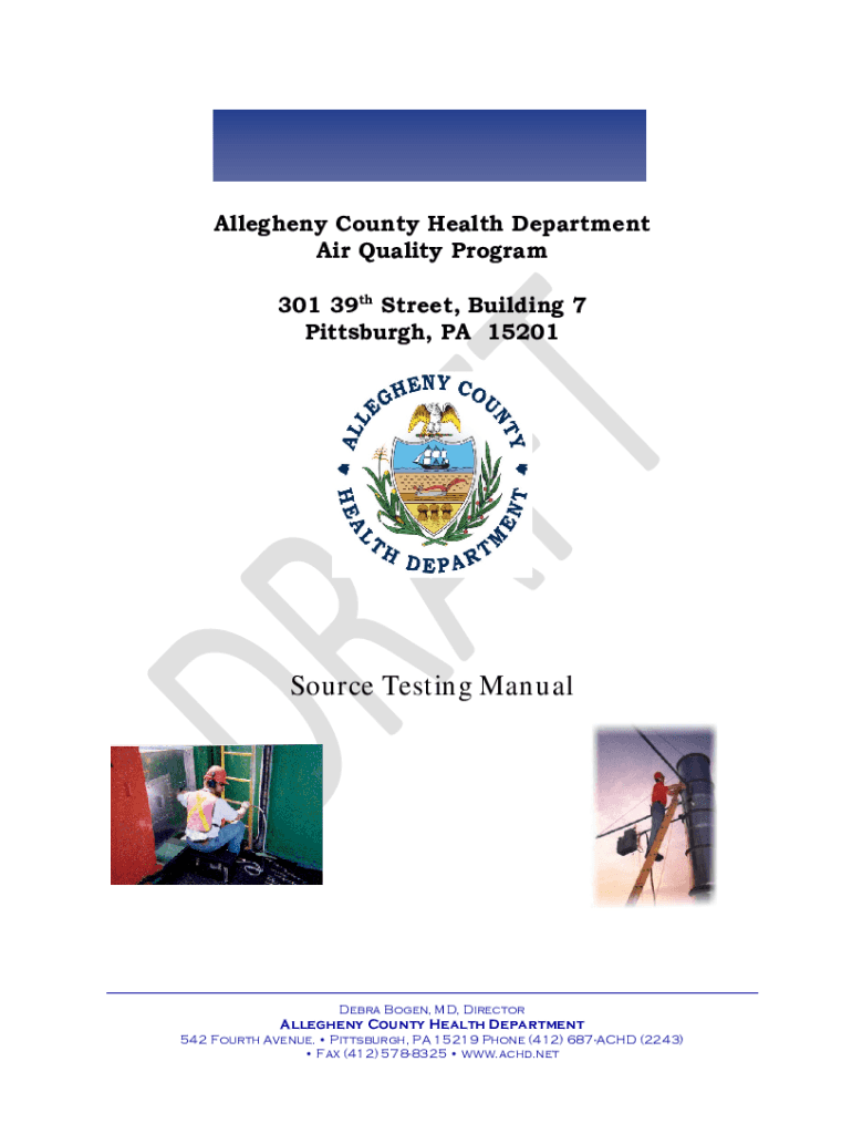 Allegheny County Health Department Air Quality Program 301 39th Street, Building 7 Pittsburgh, PA 15201Source Testing Manual Debra Bowen, MD, Director Allegheny County Health Department542 Fourth