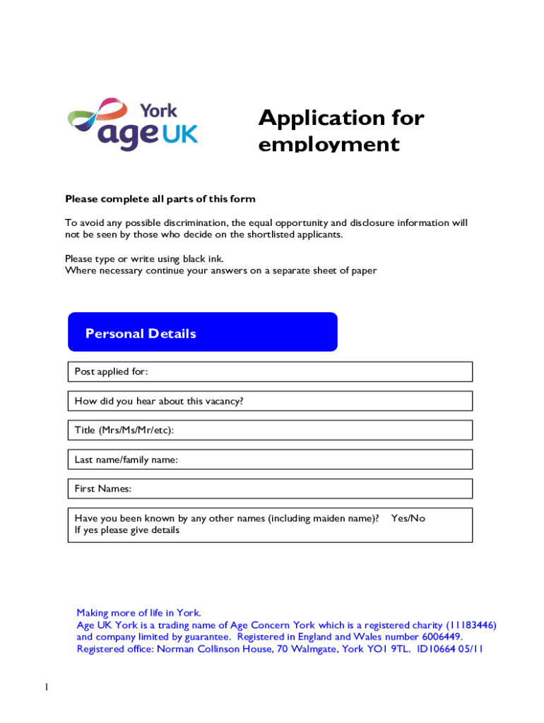 Application for employment Please complete all parts of this form To avoid any possible discrimination, the equal opportunity and disclosure information will not be seen by those who decide on the