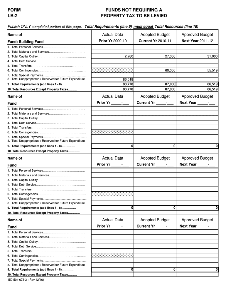 You'll need details on personal services, materials and services, capital outlay, debt service, transfers, and any contingencies prior to filling out the form.