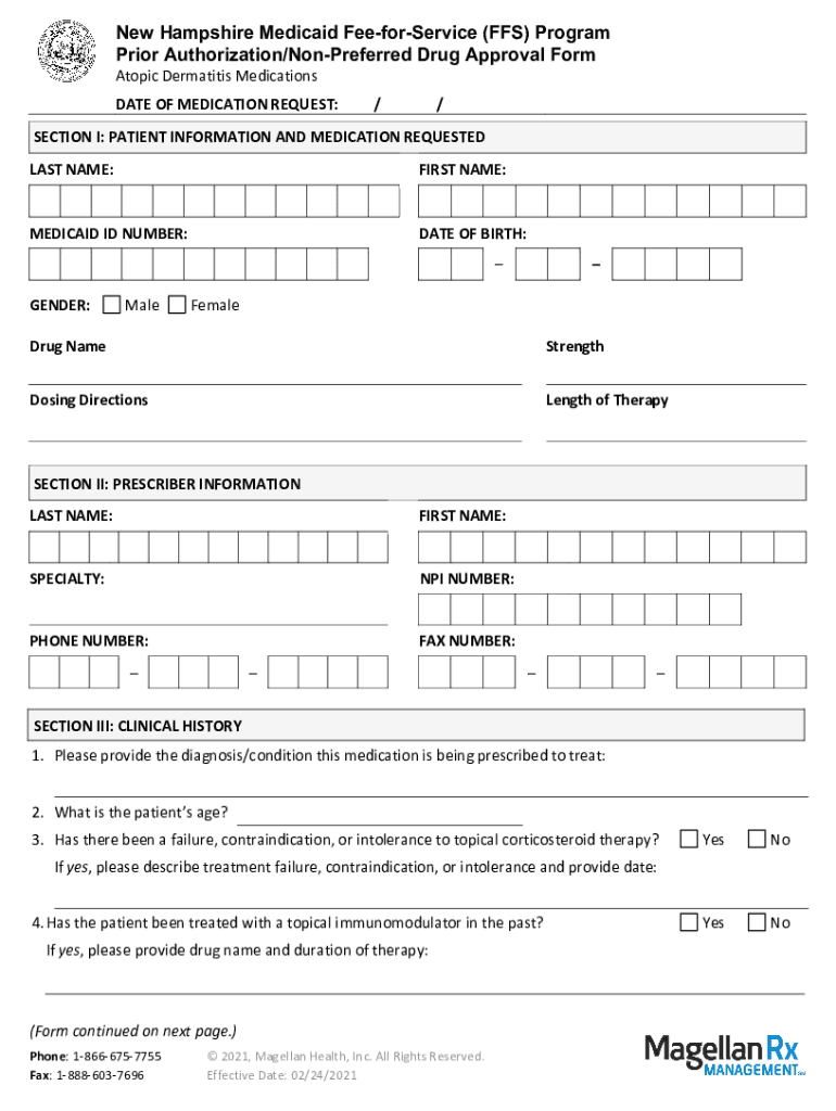 New Hampshire Medicaid FeeforService (FFS) Program Prior Authorization/Preferred Drug Approval Form Atomic Dermatitis MedicationsDATE OF MEDICATION REQUEST://SECTION I: PATIENT INFORMATION AND MEDICATION