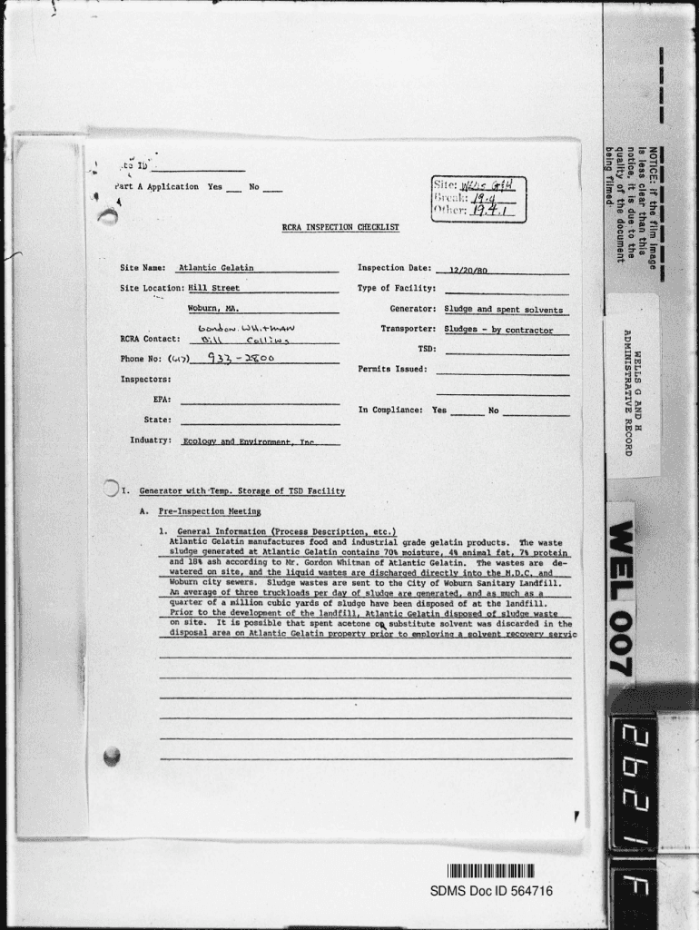 Get the free RCRA INSPECTION CHECKLIST REGARDING ATLANTIC GELATIN. Region ID