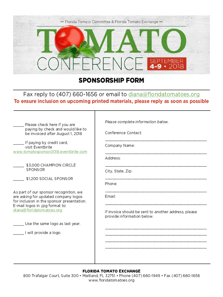 Get the free 42nd ANNUAL TOMATO CONFERENCE Sponsorship Opportunities