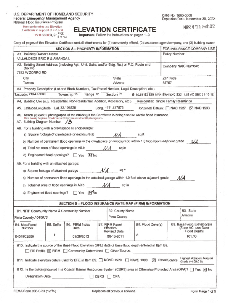 U.S. DEPARTMENT OF HOMELAND SECURITY0MB No. 16600008 Expiration Date: November 30. 2022Federal Emergency Management Agency National Flood Insurance Program Nonconforming use Elevation Certificate