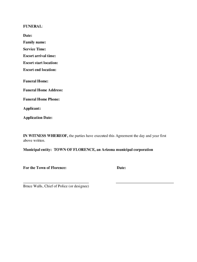 Florence Police Department Funeral Escort Policy/Agreement The Florence Police Department may provide traffic escorts for funeral services held within the approved service area under the following