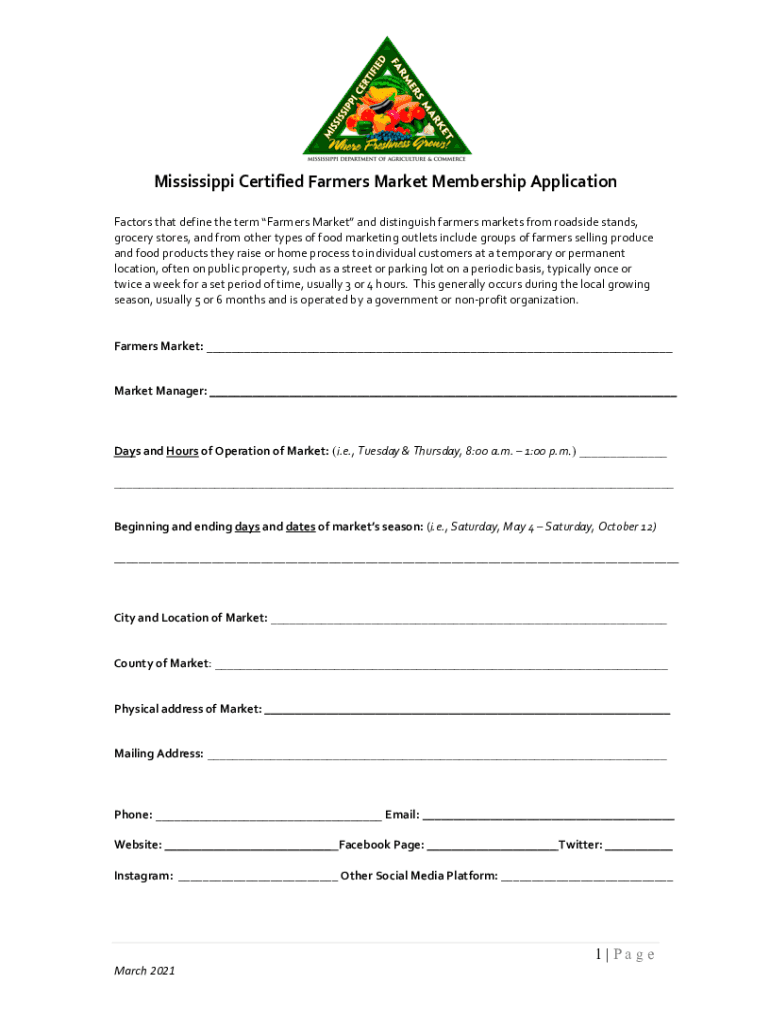 Mississippi Certified Farmers Market Membership Application Factors that define the term Farmers Market and distinguish farmers markets from roadside stands, grocery stores, and from other types of