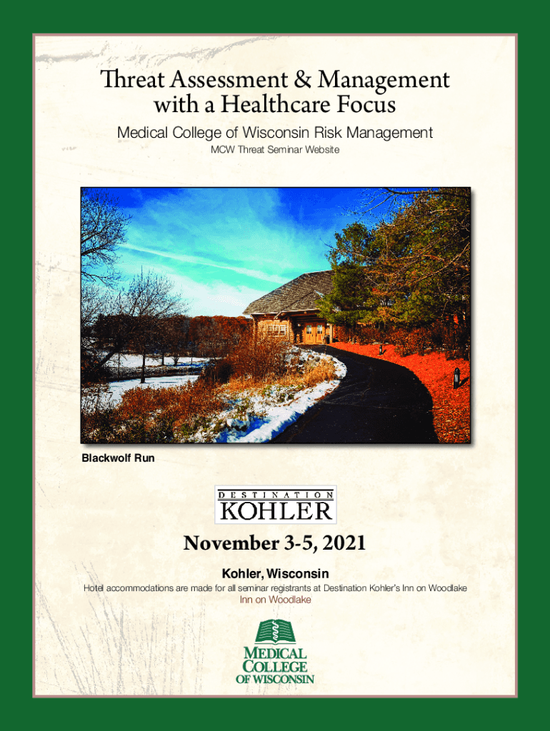 Threat Assessment & Management with a Healthcare Focus Medical College of Wisconsin Risk Management MCG Threat Seminar WebsiteBlackwolf Run November 35, 2021, Kohler, Wisconsin Hotel accommodations