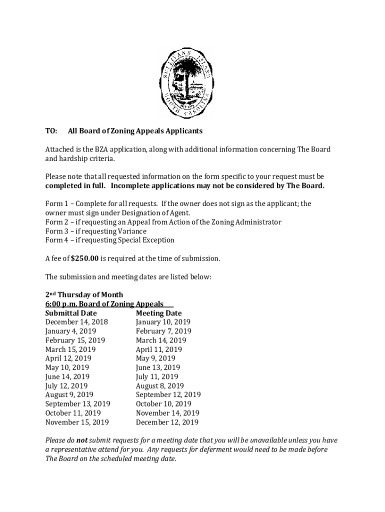 TO:All Board of Zoning Appeals ApplicantsAttached is the BZA application, along with additional information concerning The Board and hardship criteria. Please note that all requested information on