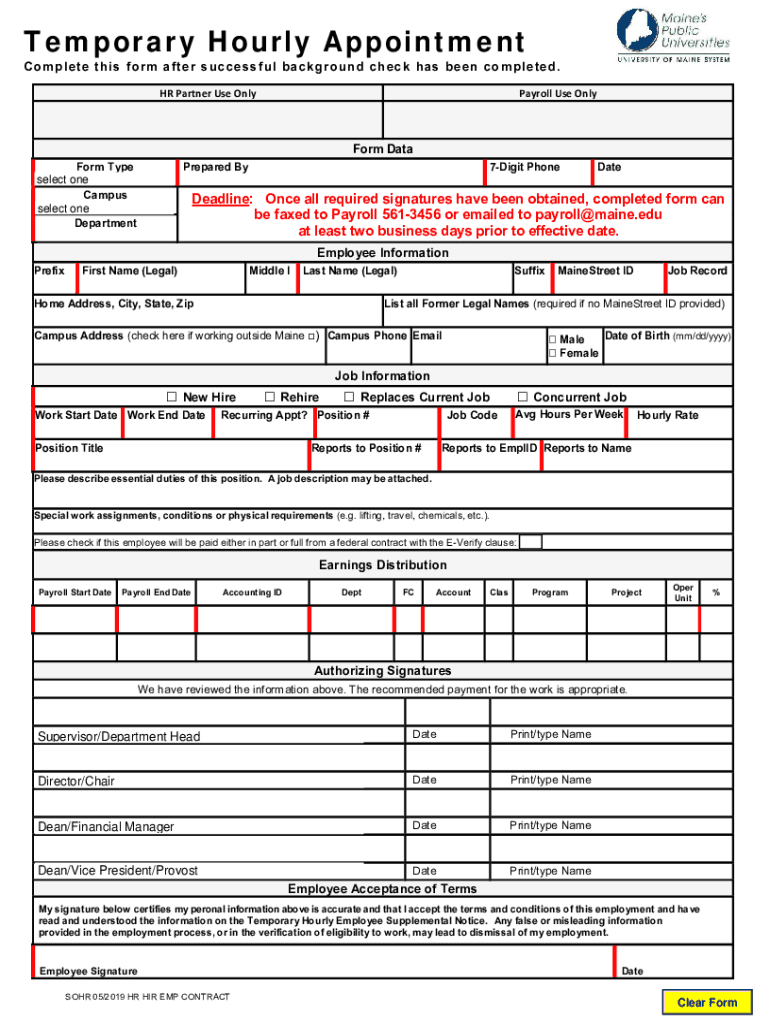 Temporary Hourly AppointmentComplete this form after successful background check has been completed. HRPartnerUse OnlyPayrollUseOnlyForm Data Form Type select one Campus select one DepartmentPrepared