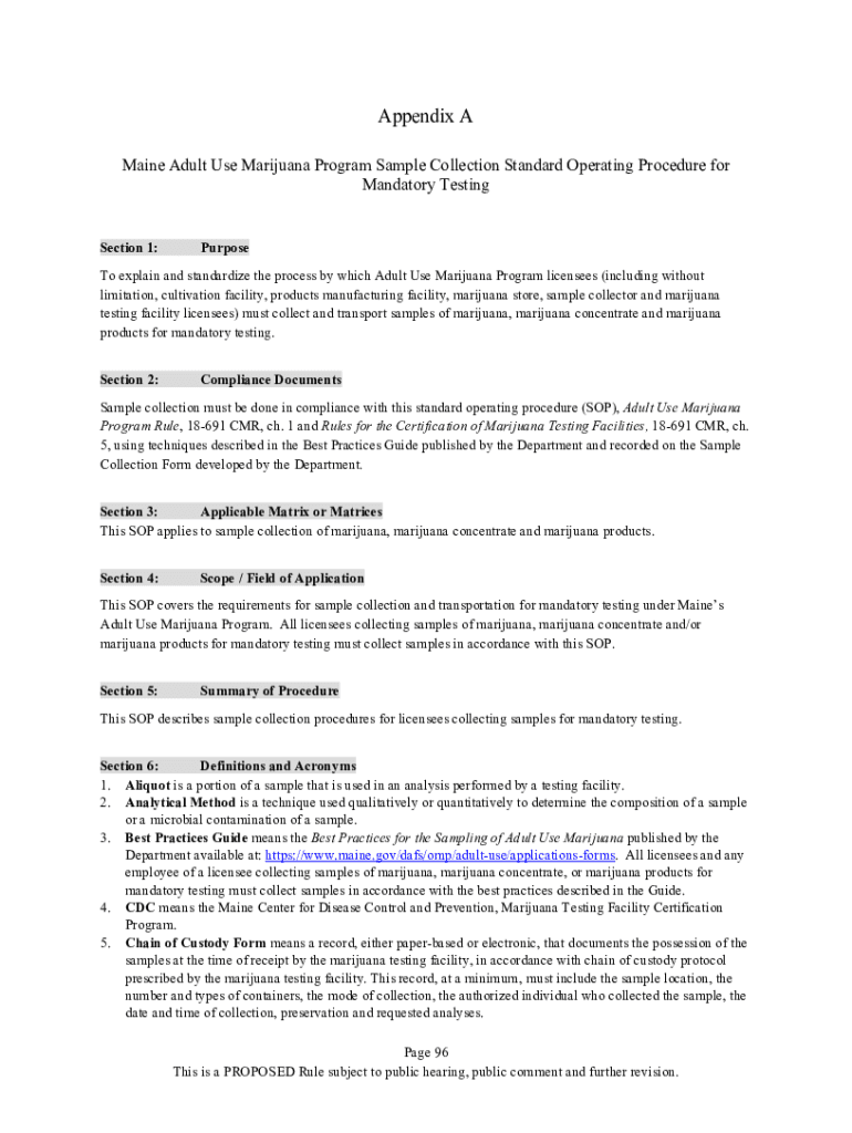 Appendix A Maine Adult Use Marijuana Program Sample Collection Standard Operating Procedure for Mandatory TestingSection 1:Purpose explain and standardize the process by which Adult Use Marijuana