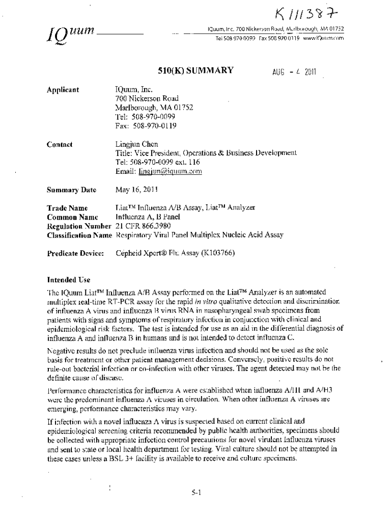 pdfFiller has made it simple to fill out and eSign k111387 - 510k premarket. The application has capabilities that allow you to modify and rearrange PDF content, add fillable fields, and eSign the document. Begin a free trial to discover all of the features of pdfFiller, the best document editing solution.