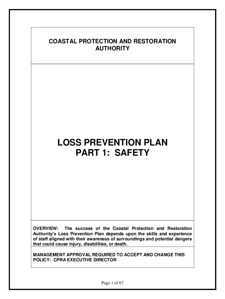 Get the free LOSS PREVENTION PLAN PART 1: SAFETY - coastal.la.gov