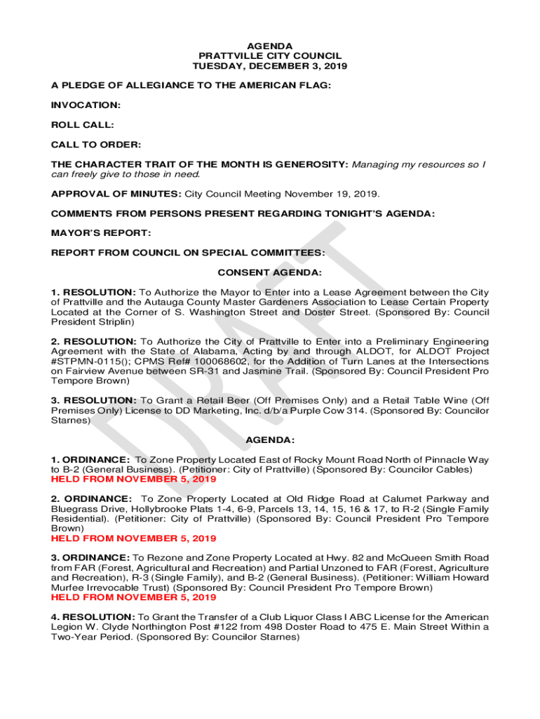 Get the free AGENDA PRATTVILLE CITY COUNCIL TUESDAY, DECEMBER 3 ...