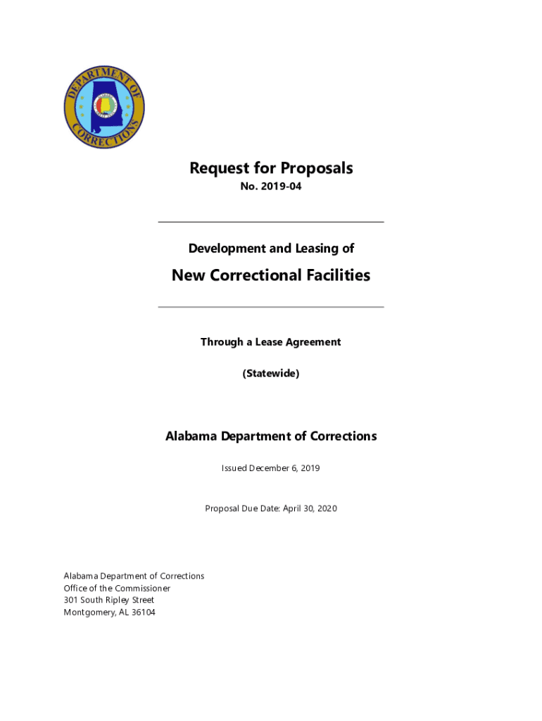 Request for Proposals No. 201904Development and Leasing one Correctional FacilitiesThrough a Lease Agreement (Statewide)Alabama Department of Corrections Issued December 6, 2019Proposal Due Date: