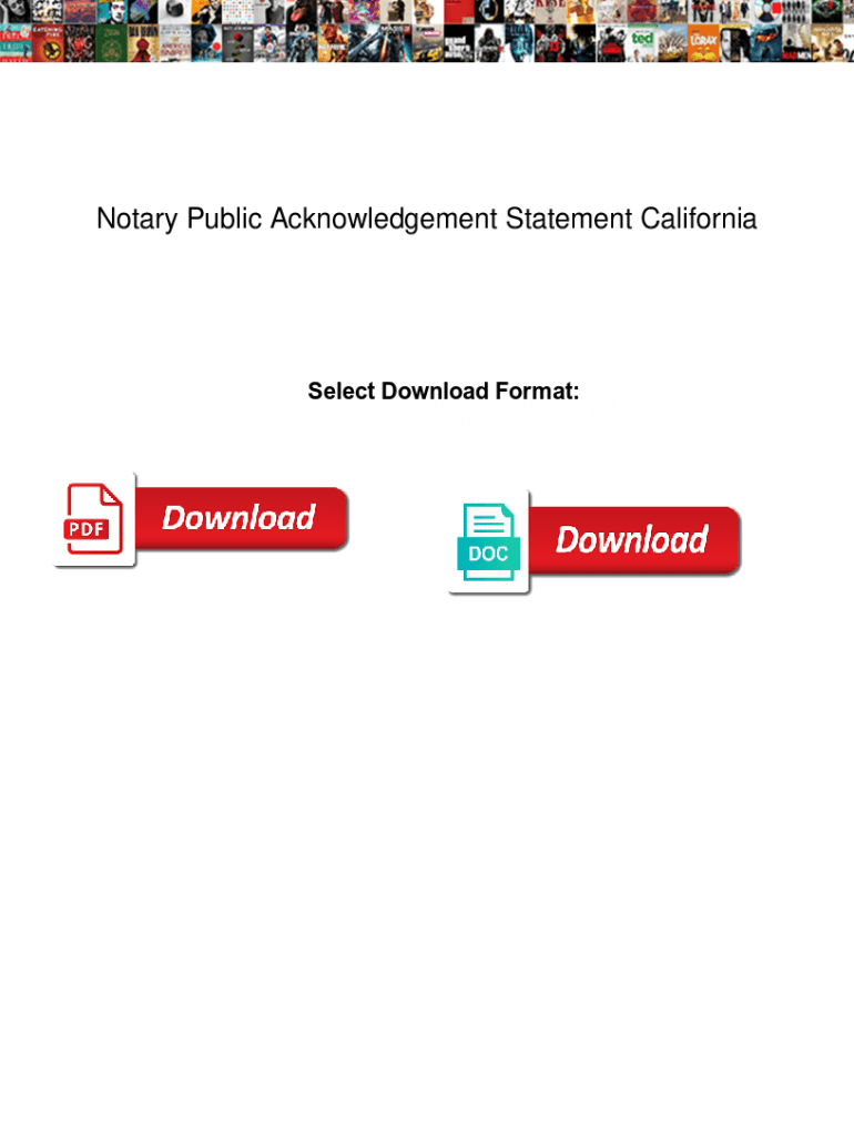 Get the free Notary Public Acknowledgement Statement California. Notary Public Acknowledgement St...