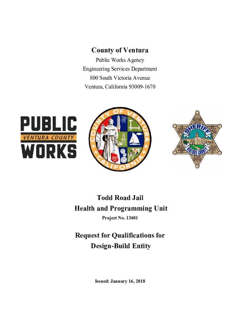 County of Ventura Public Works Agency Engineering Services Department 800 South Victoria Avenue Ventura, California 930091670 Todd Road Jail Health and Programming Unit Project No. 13401Request for