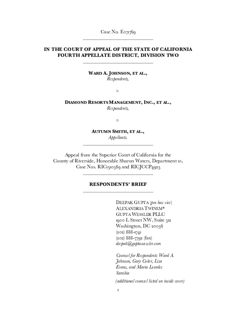 Case No. E071769 IN THE COURT OF APPEAL OF THE STATE OF CALIFORNIA FOURTH APPELLATE DISTRICT, DIVISION TWO WARD A. JOHNSON, ET AL., Respondents, v. DIAMOND RESORTS MANAGEMENT, INC., ET AL., Respondents,