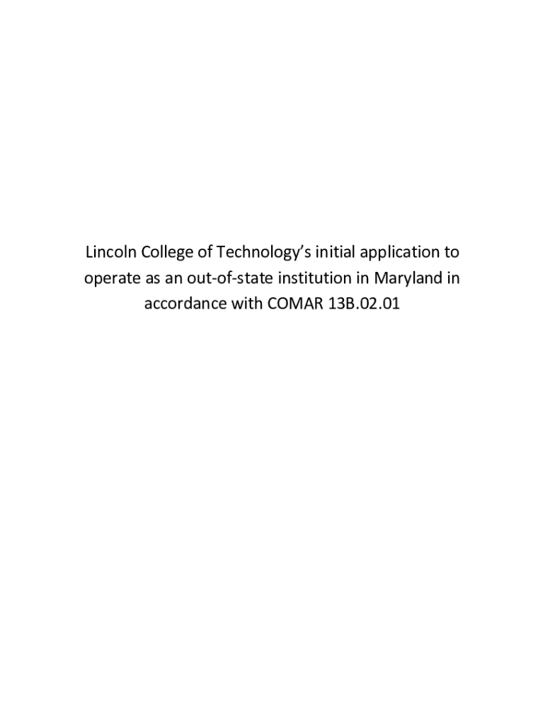 Lincoln College of Technologies initial application to operate as an outofstate institution in Maryland in accordance with COMA 13B.02.01February 26, 2021 VIA OVERNIGHT MAIL Dr. James D. Fielder Secretary