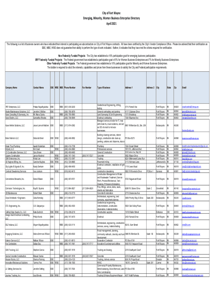 Get the free City of Fort Wayne Emerging, Minority, Women Business ...