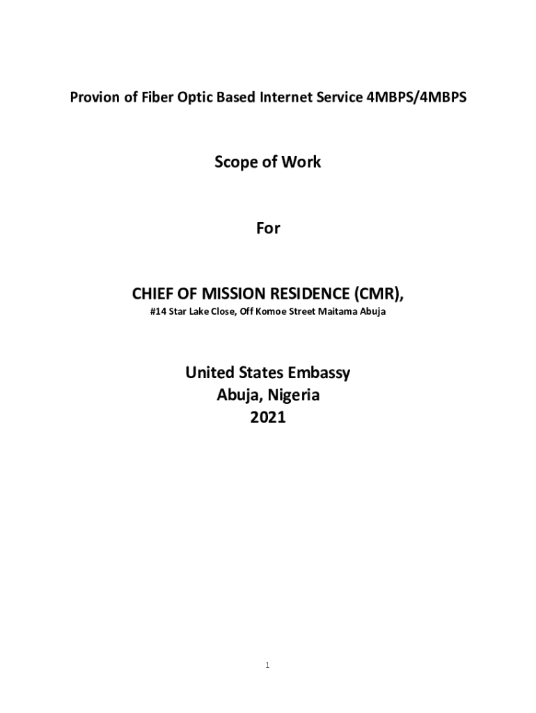 Provion of Fiber Optic Based Internet Service 4MBPS/4MBPSScope of Workforce OF MISSION RESIDENCE (CMR), #14-Star Lake Close, Off Some Street Gautama AbujaUnited States Embassy Abuja, Nigeria 20211TABLE