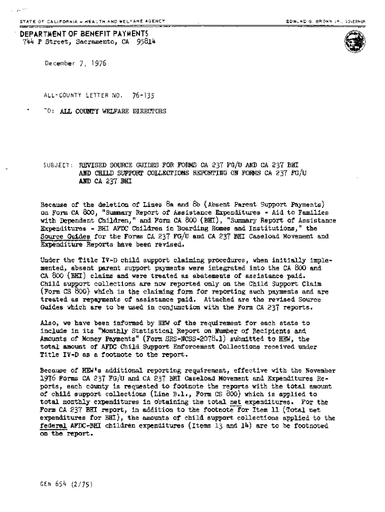 Get the free ACL 76-135. REVISED SOURCE GUIDES FOR FORMS CA 237 FG/U AND CA 237 BHI AND CHILD SUP...