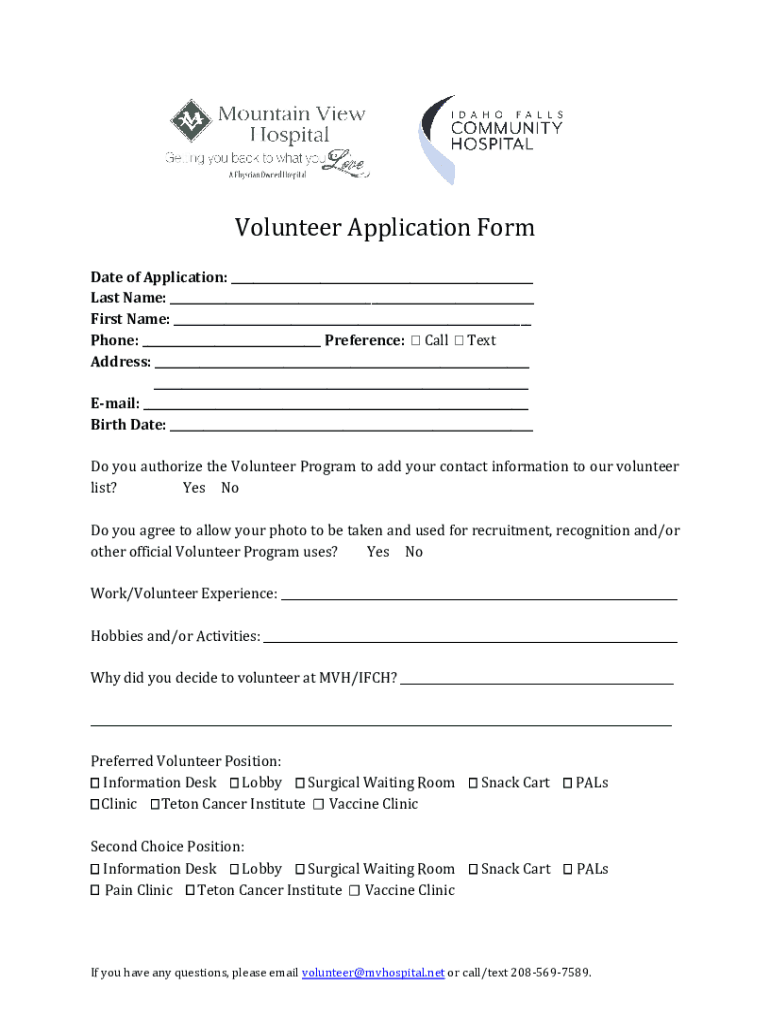 Get the free Volunteer Application Form - idahofallscommunityhospital.com
