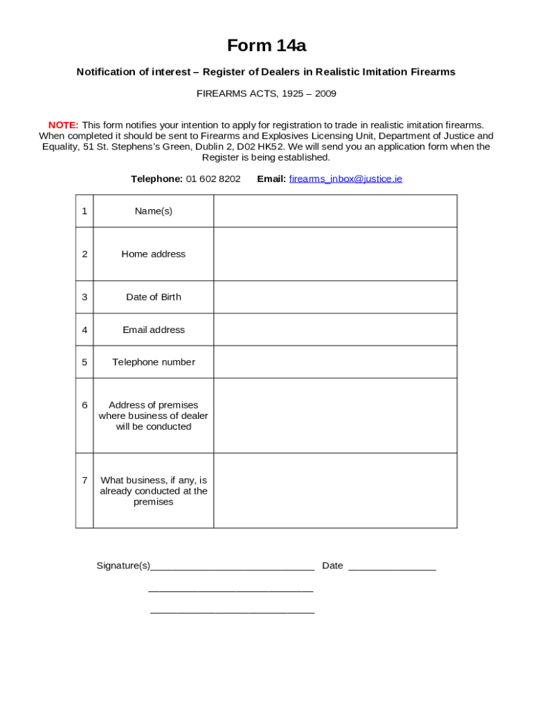 Instructions for the form Notification of interestRegister of Dealers in Realistic Imitation Firearms. Realistic Immitation Firearms