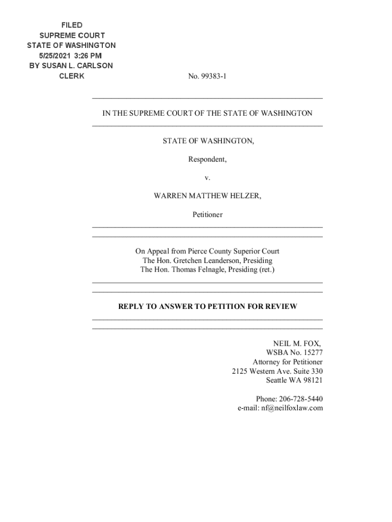 FILED SUPREME COURT STATE OF WASHINGTON 5/25/2021 3:26 PM BY SUSAN L. CARLSON CLERK No. 993831 IN THE SUPREME COURT OF THE STATE OF WASHINGTON STATE OF WASHINGTON, Respondent, v. WARREN MATTHEW HELPER,