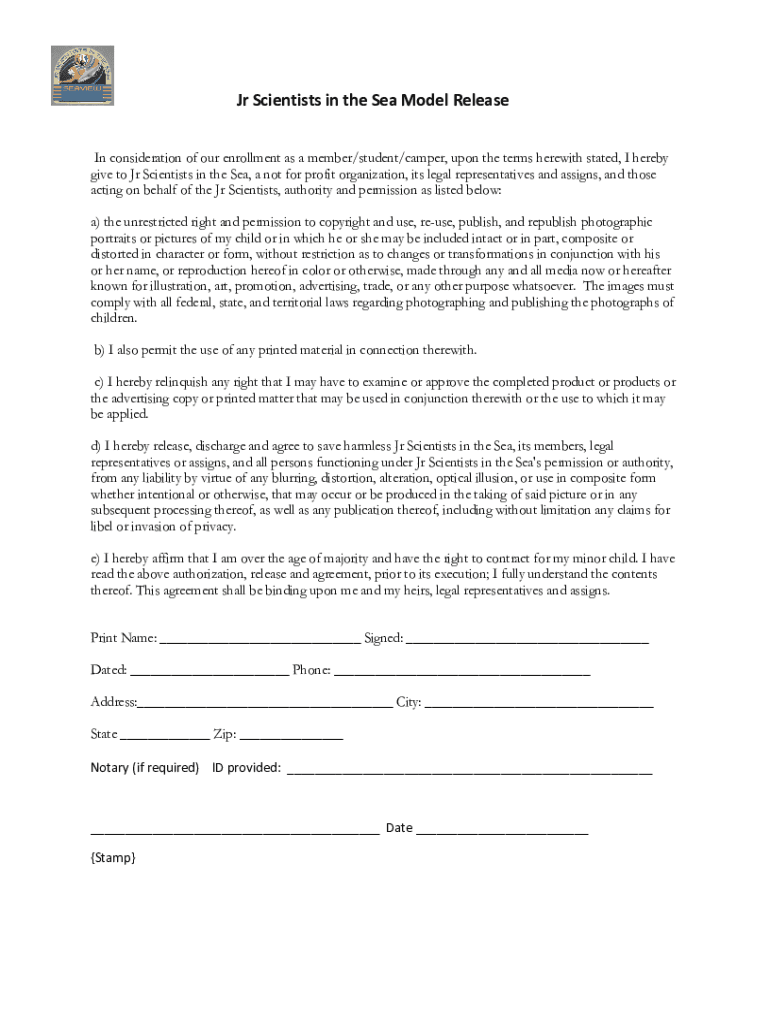 Get the free Jr Scientists in the Sea Model Release